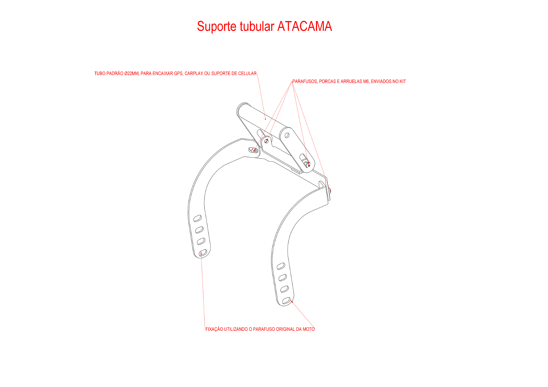 -Manual de instalação Suporte tubular celular e GPS Lander 250, Crosser 150, Bros 160.