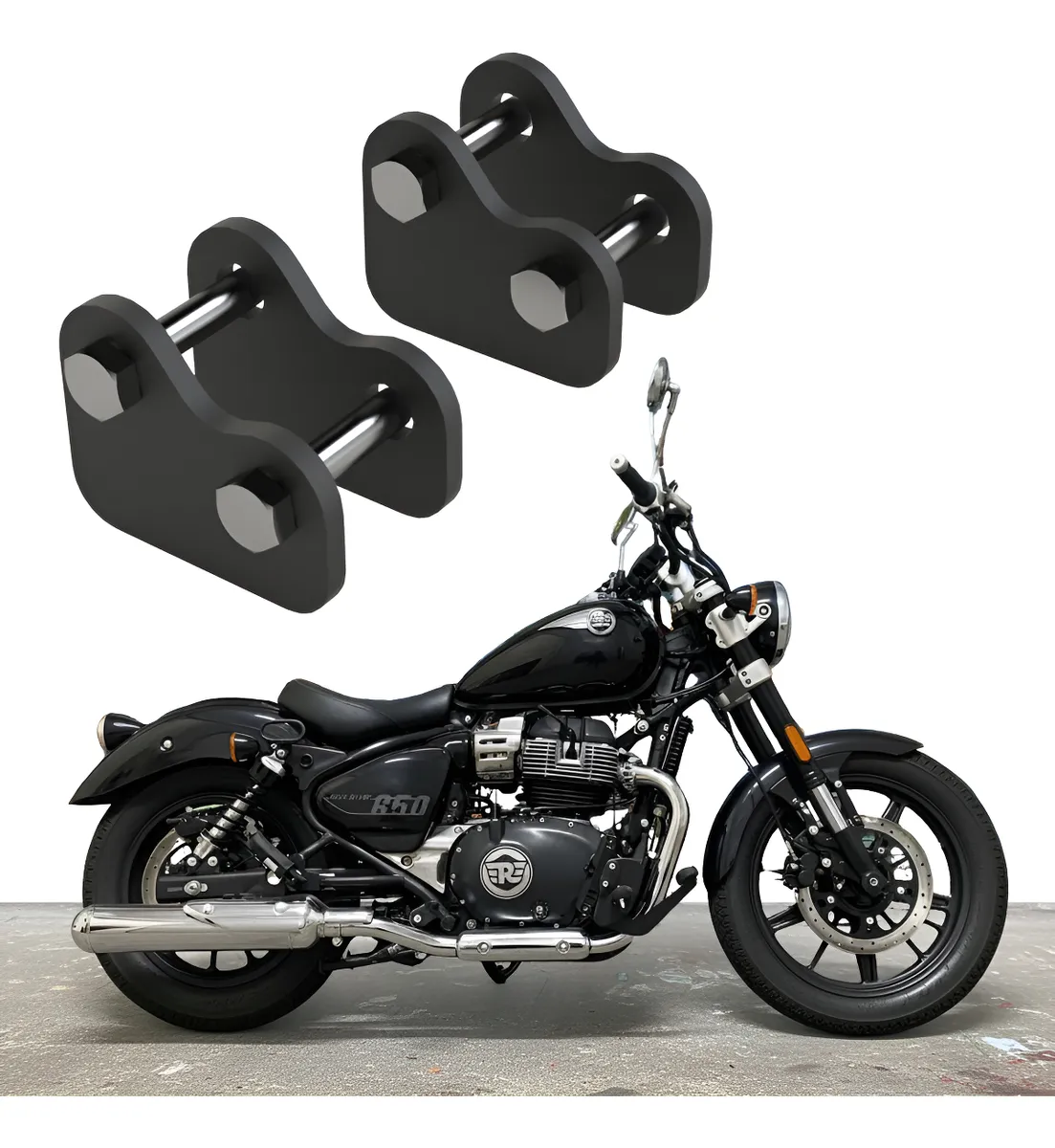 Rebaixador para Super Meteor e Shotgun 650 Todos anos e modelos Peça muito robusta e segura.